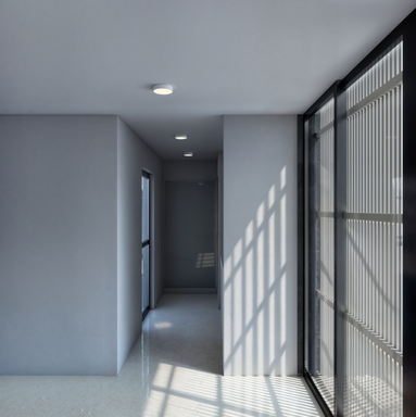 Debido a que el terreno tiene poco fondo (solo 15.00 mts. útiles) y el programa de necesidades requería 4 habitaciones, se optó por dejar pozos de luz hacia pequeños patios distribuidos en torno a los espacios que requerían de luz natural, ventilación y seguridad.